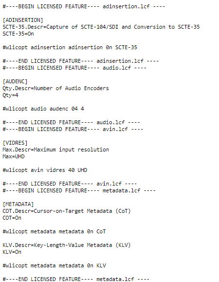 The encoder will reboot and you will be returned to the Sign-in page.To view an installed license file, click the vertical ellipsis menu in the listed license, and click View.