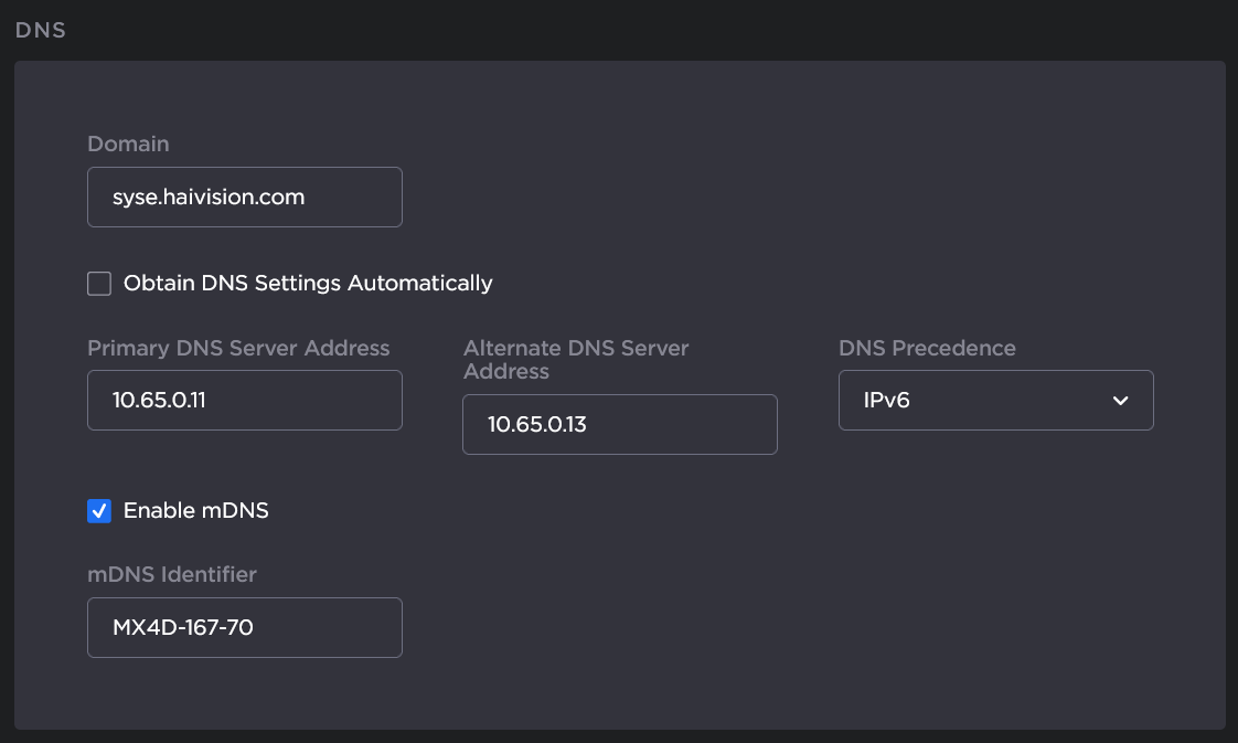 To configure DNS settings, scroll down to the DNS section and select or enter the new value(s) in the appropriate field(s). For details, see Network Settings.