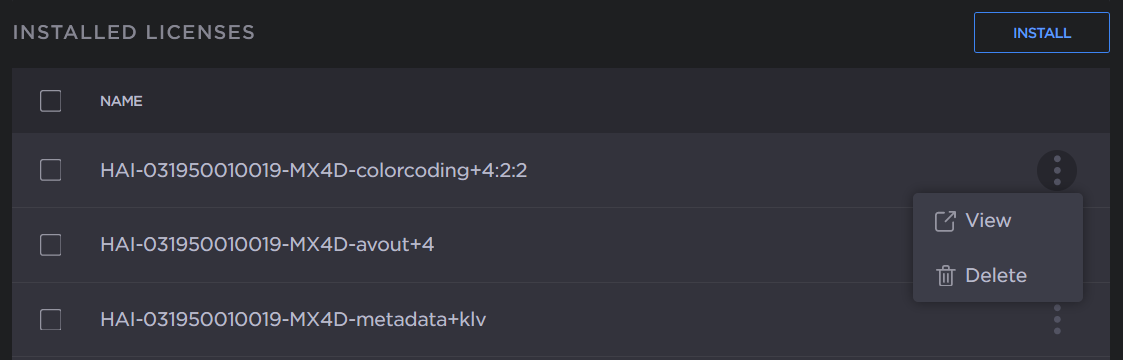 The decoder will reboot and you will be returned to the Sign-in page.To view an installed license file, click the vertical ellipsis menu of the listed license, and click View.