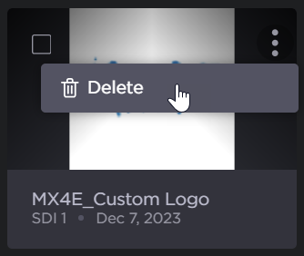 To delete a logo, find it in the list of available logos, click the vertical ellipsis menu, and click Delete.