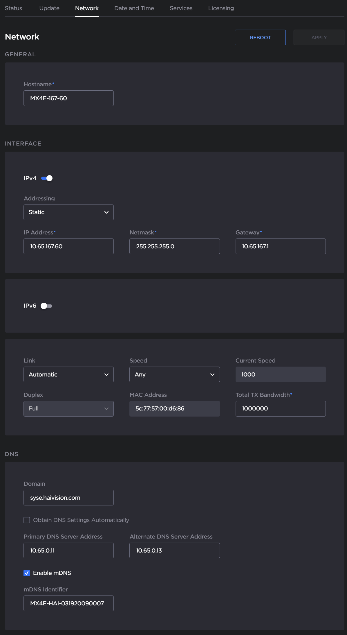 When you make changes to the Network settings, be sure to write down the new encoder IP Address or label the chassis. After you apply your changes and reboot, you will have to redirect the browser to the new IP address and sign in again in order to access the encoder.