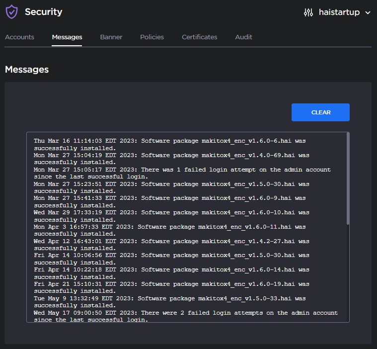 The Messages page displays a limited number of important administrator actions recorded such as installation of a software package, failure to establish or maintain connectivity with a remote syslog server, Power-On Self Test (POST) errors, and other noteworthy events.
