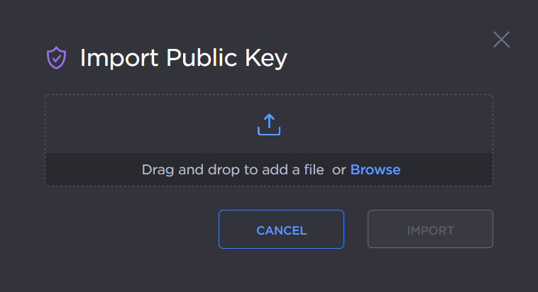 To delete one or more previously uploaded public key files from the list, check the checkbox next to one or more filenames (or check All) and click Delete.
