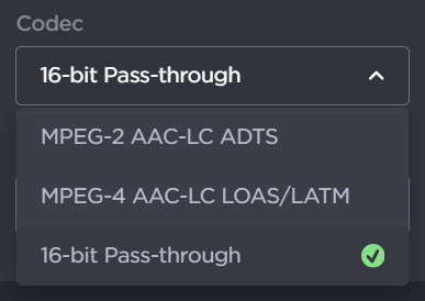 in the audio encoder panel you wish to modify. For the Codec, select 16-bit Pass-Through.