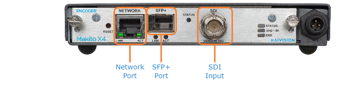 The Makito X4 Single Channel includes two video encoding cores and eight audio encoding cores. This encoder supports one video input of 12G-SDI, 3G-SDI, and HD-SDI, with UHD, ST 2110, and (optionally) KLV metadata.