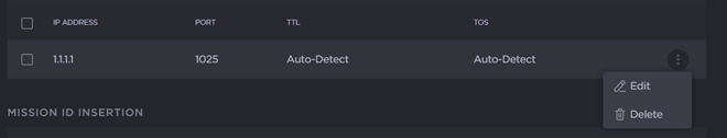 6. To edit a CoT relay destination, click the vertical ellipsis menu on the relay stream and select Edit.