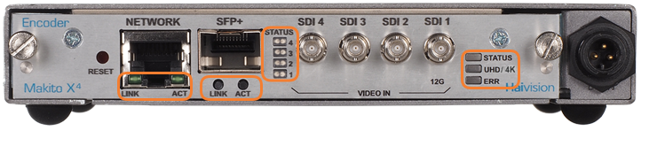 The LED colors and flashing (blinking) speed indicate the status (operational state) of the Makito X4 encoder.