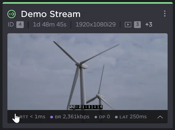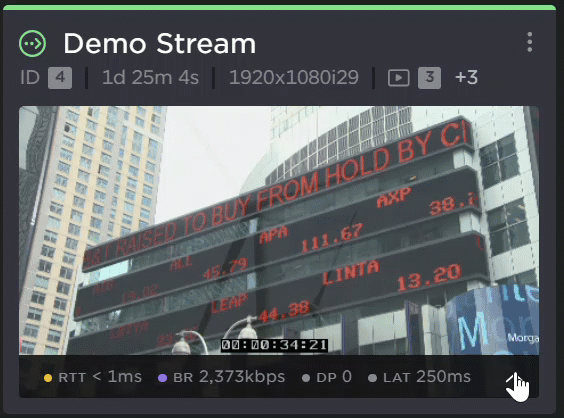 The dashboard also provides visual references to quickly asses the state of each stream, as well as video and audio encoding overviews, and the device status.