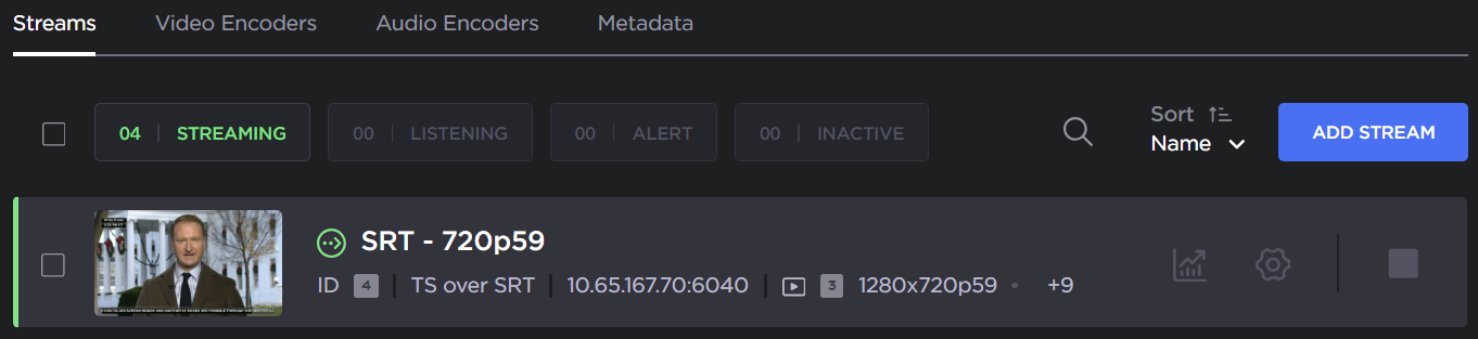 Click Streaming on the sidebar, and select the Video Encoders tab. The Video Encoders List View opens.