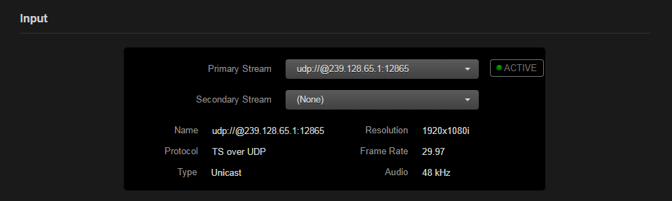 (Optional) Select a Secondary (alternate/redundant) stream for the decoder channel.