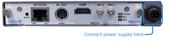 To prevent damage to the Makito X and/or power supply, be sure to connect the power supply to the chassis first and then to the AC source.