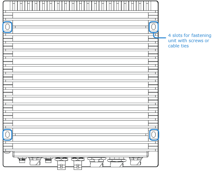 Or you can use two stainless steel, harsh-environment cable ties (up to 250 mils wide), which can be passed through slots in the chassis.