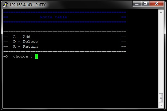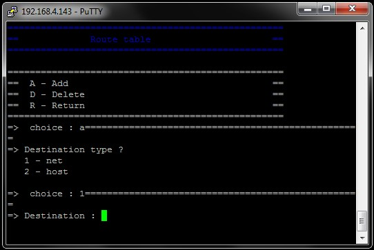Press 1 or 2 on your keyboard to select the Ethernet interface for which you want to set this route.
