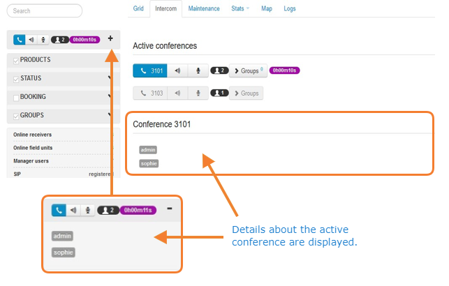Under the Active conferences section, click the conference number that you want to join.