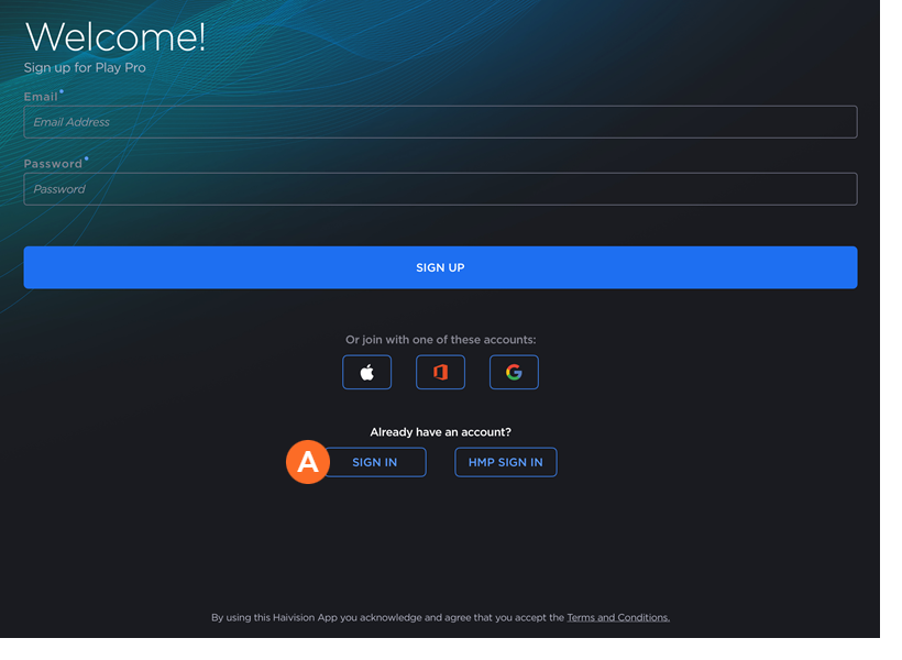 The following instructions are for resetting the password to your account created for Play Pro and registered with Haivision. These instructions are not for resetting passwords for third-party accounts (Apple, Office 365, or Google), or HMP accounts. For help resetting the password for an HMP account, contact your administrator or refer to the HMP documentation.