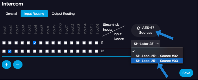 Scan AES-67 sources and select amongst the IFB inputs available.