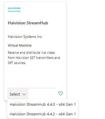 From the Select menu in the Haivision StreamHub tile, choose the StreamHub version you wish to use: