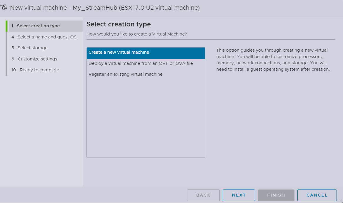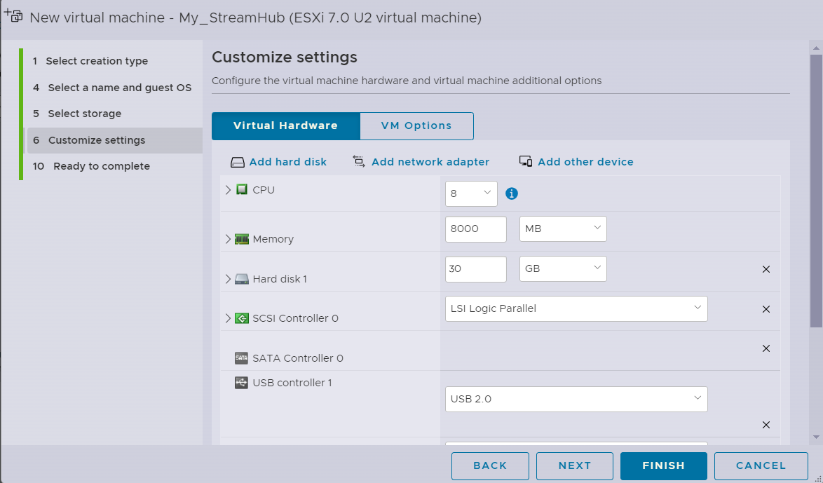 The following steps explain how to configure a virtualized StreamHub over VMware ESXI from an ISO file.