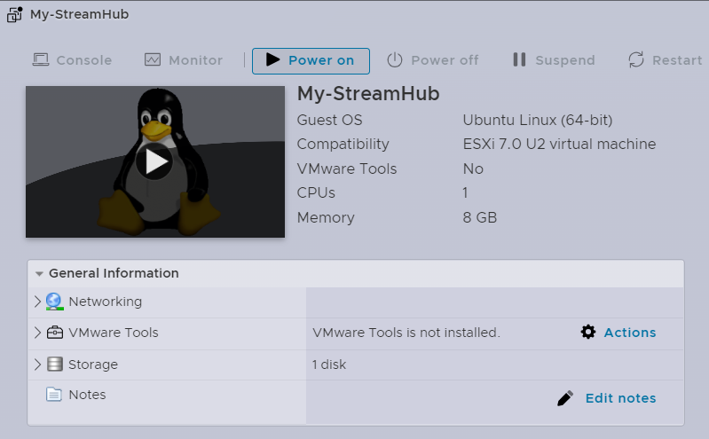 Your virtual SteamHub is now ready to be used. Click Power on.