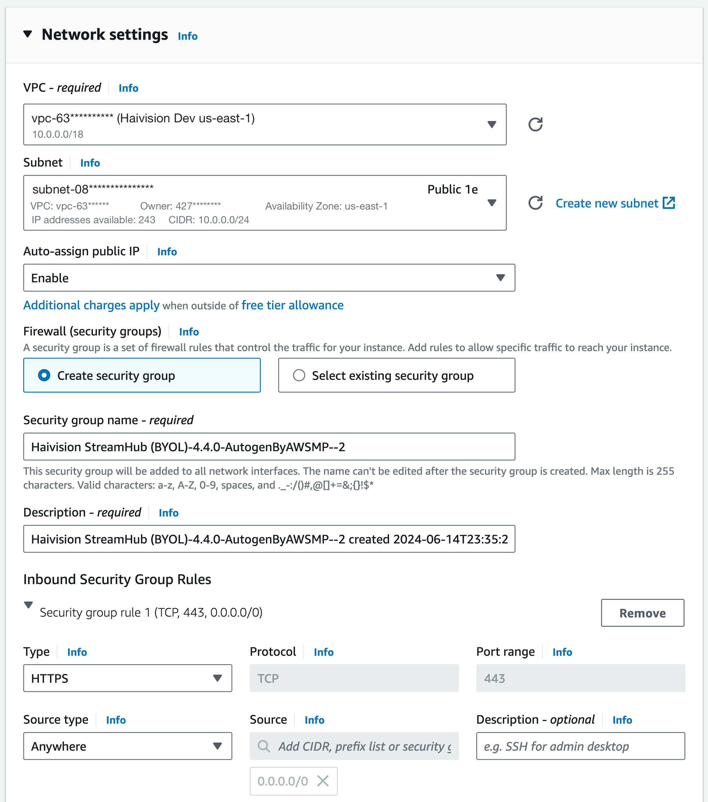 Choose a Billing Method, Region, and Network/Zone (Virtual Private Cloud) for your StreamHub deployment: