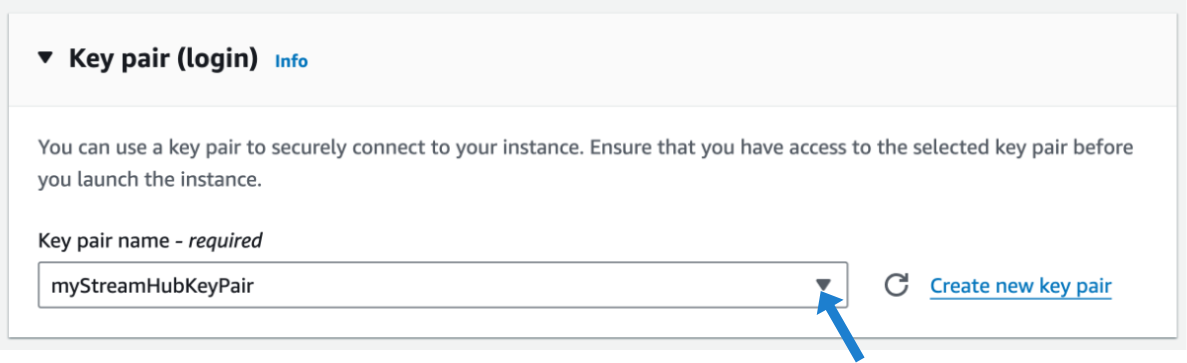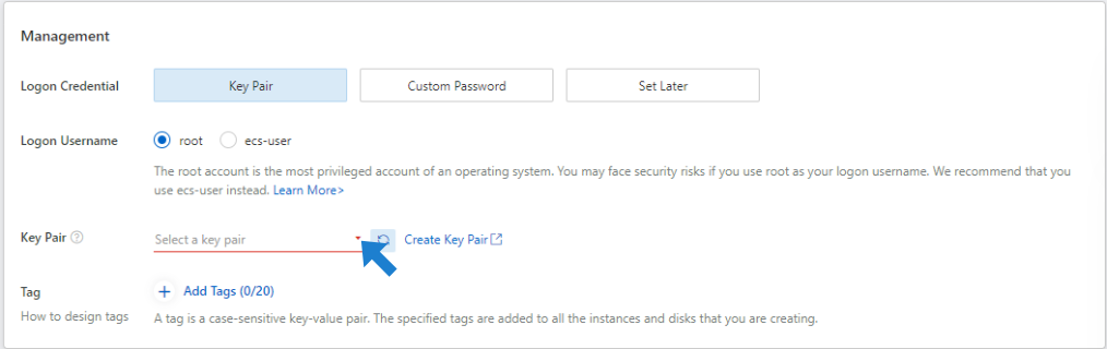 In the Management section, choose the newly created Key Pair: