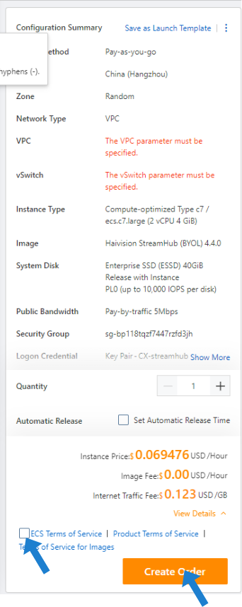 Review your changes. When ready, accept the service terms and then click Create Order: