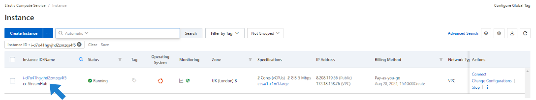 Click on the Instance ID to view its details:
