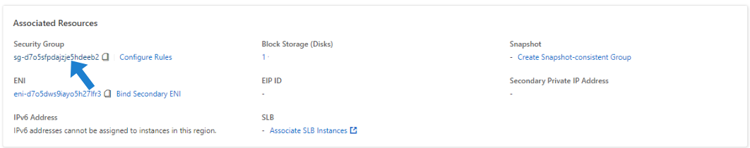 Under Associated Resources, click on the Security Group link: