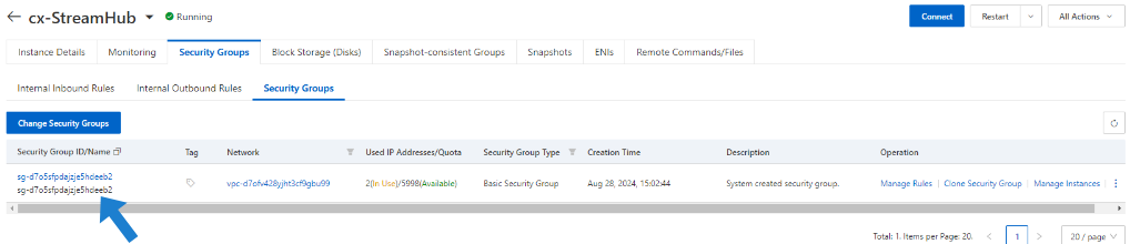 Click on the Security Group ID/Name: