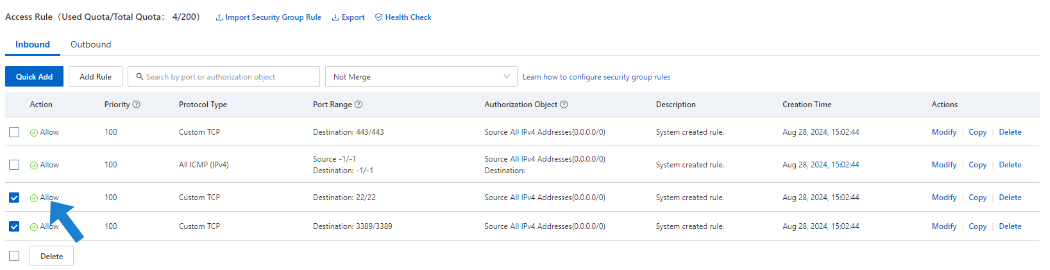 Return to the Instance Details page and review the Inbound Rules.