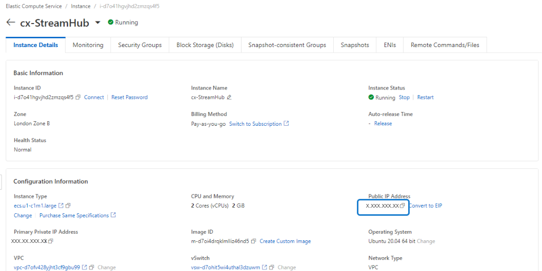 After a few moments, go onto the Instance Details page, and copy the Public IP address.