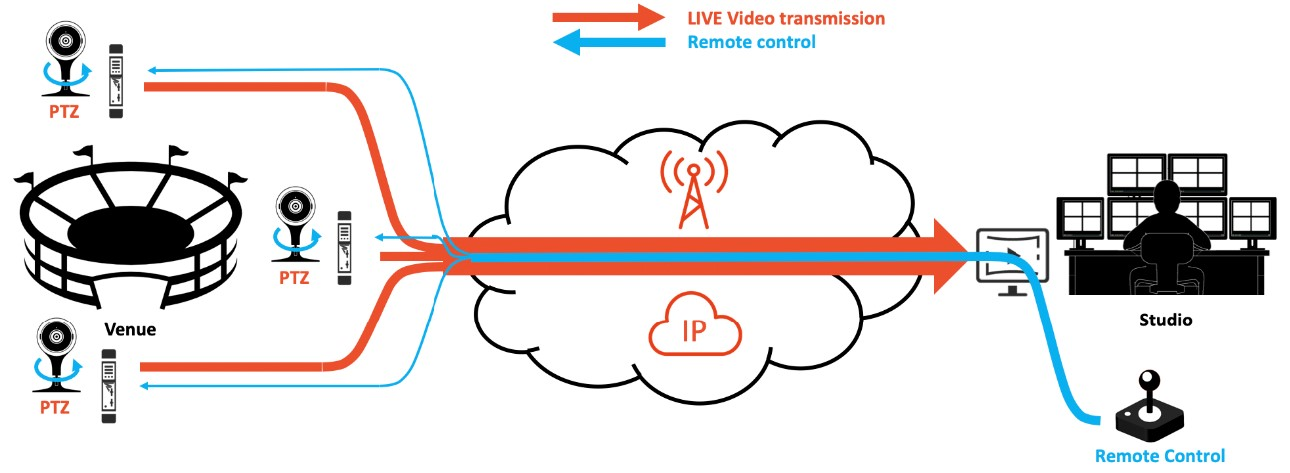 When configured in Data Bridge mode, the unit can be used as a Data Bridge that provides access to the Internet from the field, or access to devices connected to the transmitter LAN from the studio (e.g., remote control of the camera).