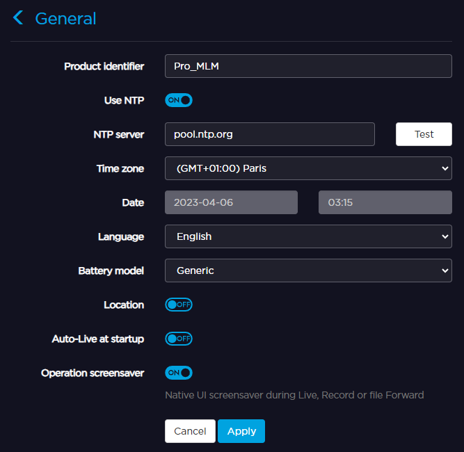 After entering the address of the NTP server you wish to use, click the Test button to ensure you can connect to it.