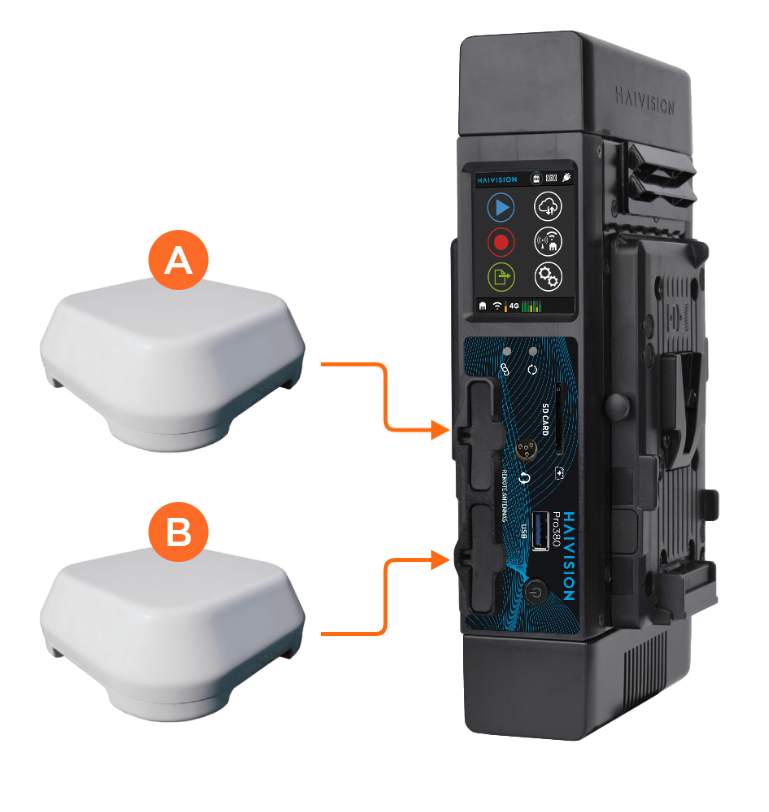 You can connect up to two Quad Antennas to the MCX connectors on the front of the device.