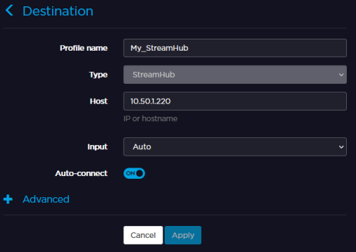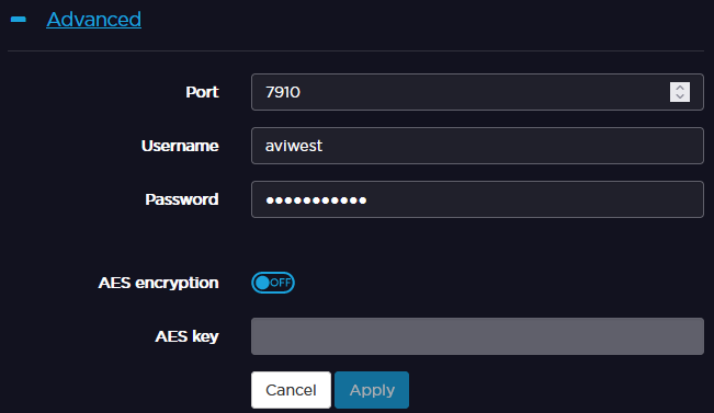 7. Tap  to enable it, or  to disable it. If enabled, enter the AES key as defined in the destination server interface (please refer to the Server User Guide).