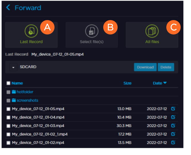 Ensure a mass storage device, such as an SD card or a USB memory stick, is connected to the unit. You can choose to forward: