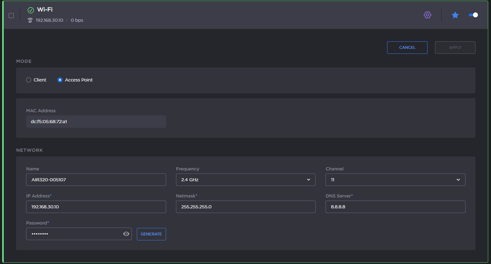 in the Wi-Fi line.In the Mode section, select Access Point.
