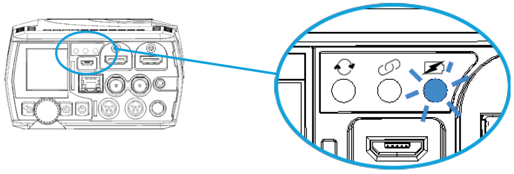The battery indicator lights up in green when charging. It turns to blue when the unit battery is fully loaded.