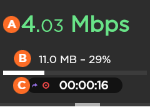Network Bitrate Amount and percentage of data already forwarded (if option enabled) Record Duration