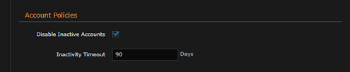 In the Session Policies section of the Administration > Policies page, check the Disable Inactive Accounts checkbox.