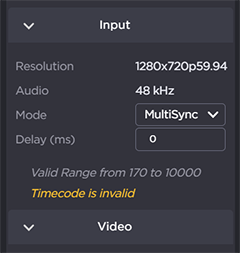 A yellow triangle appears next to the MultiSync Delay field if the value is outside the acceptable range. Position the cursor over the triangle to see a tool tip explaining the problem, as shown in the following example.