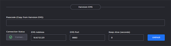 On the Haivision EMS dialog, click Unpair.